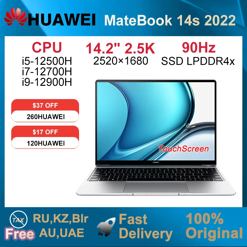 2022 HUAWEI MateBook 14s 14.2 Inch Touchscreen 2.5K 90Hz Laptop i5-12500H/i7-12700H/i9-12900H 16GB 512GB/1TB Iris Xe Graphics
